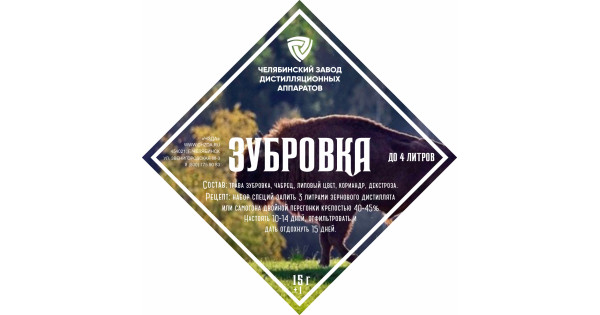 Composition: The set of herbs and spices "Zubrovka" includes: zubovka, thyme, lime blossom, coriander, dextrose Recipe Ingredients from the packaging, pour 1 liter of double distilled liquor or alcohol with a strength of 70%. Stir an..