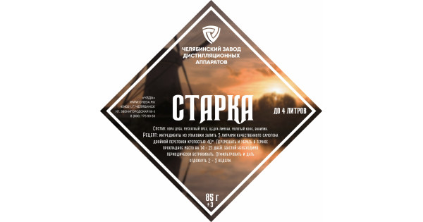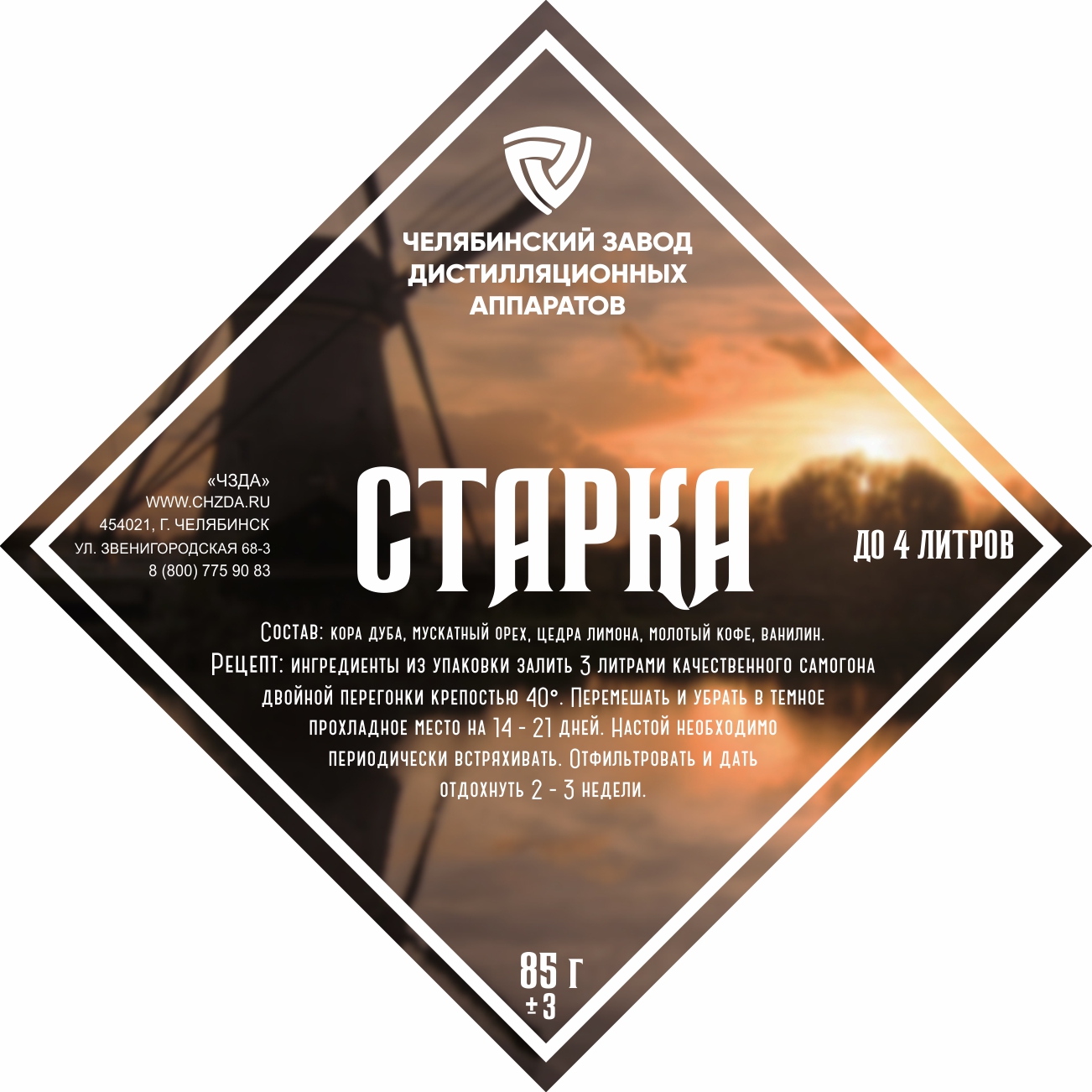 Set of herbs and spices "Stark".Composition:The Stark herbs and spices set includes: oak bark, nutmeg, lemon peel, ground coffee, vanilla.Recipe:Pour the contents of a large package with alcohol or moonshine with a strength of 40% in a volume of 3 li..