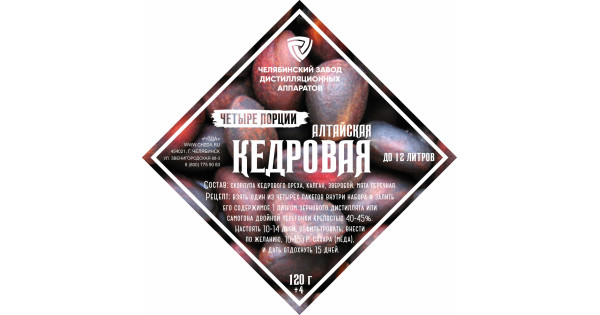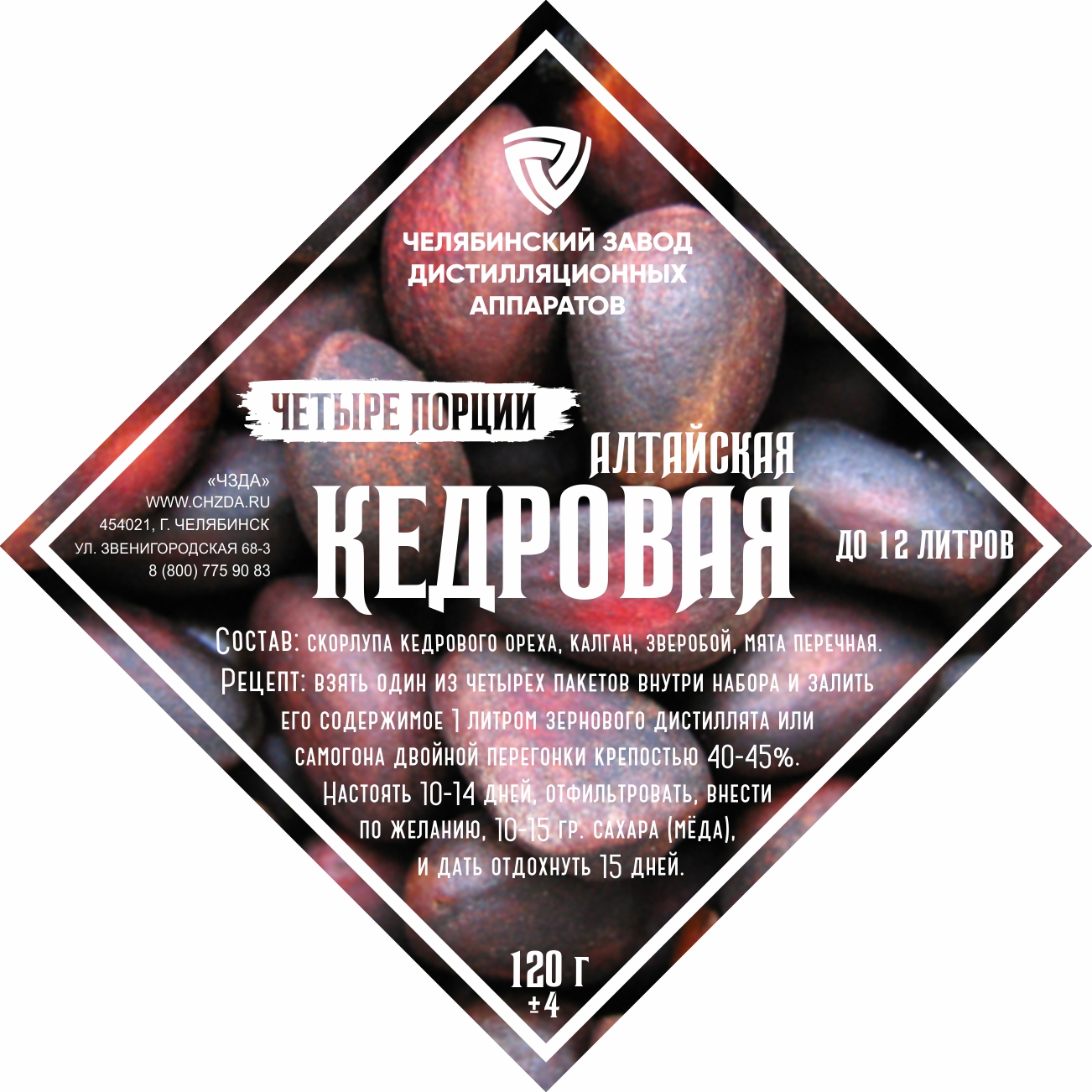 Tincture "Altaisk Cedar" Composition: cedar nut shell, calgans, St. John's wort, peppermint. Recipe Ingredients from the packaging pour 1 liter of vodka or a double-mural distillate with a strength of 40-45%. Stir and remove in a..