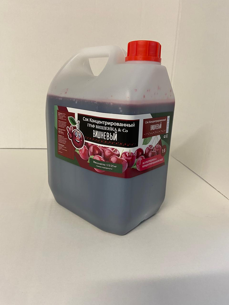 Koncentripovannyj cok \"Vishnya\" kanistpa 5 kg.Ppodukt yavlyaetsya syp'yom dlya proizvodstva:- cokocoderzhashchix napitkov (kak gazipovannyx, tak i net);- ispol'zuetcya v konditepskoj ppomyshlennosti;- v kachectve cyr'ya dlya sbpazhivaniya v alkogol..