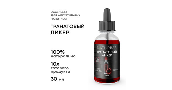 Essenciya "Granatovyj liker", 30 mlNatural'naya vkusoaromaticheskaya essenciya dlya sozdaniya likera v domashnih usloviyah.Primenenie: Dobav'te soderzhimoe flakona v Vash distillyat, magazinnuyu vodku ili spirt, razbavlennyj vodoj do nuzhnoj kreposti..