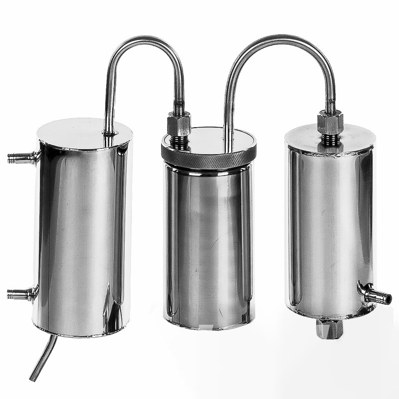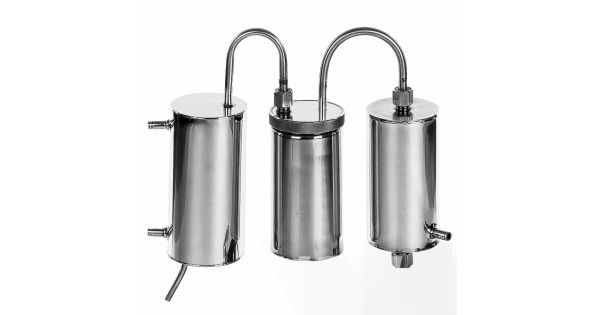 ​ The design of Abramov with a clamp is designed for the production of pure and fragrant distillates at home. The principle of operation is based on the consecutive connection of two dry-cells, each of which separates fusel oils and other fractions ..