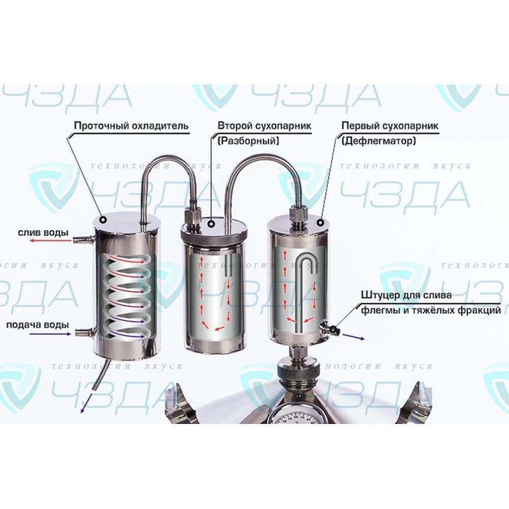 - As the alcohol content in the primary wort decreases, the thermometer readings on the distillation cube begin to rise, down to 99°C - these are the regulatory indicators.