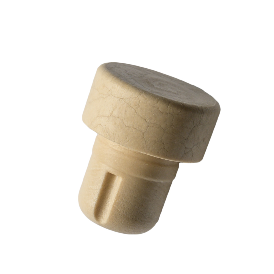 Plug T-shaped polymer is completely made of foamed food polymer materials, resistant to alcoholic media. Its physical and mechanical characteristics exceed the cortical ones. It does not emit trichloroanisole, relieving the drink of extraneous tastes..